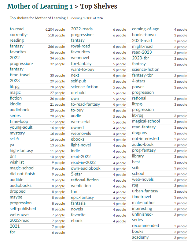 You can mark each book with a shelf tag, seen above. These are ways to group books you’ve read. I like to mark things with sub genres, number of POVs, whether or not something is progression fantasy, ect and I use this to help sort when recommending books to others.