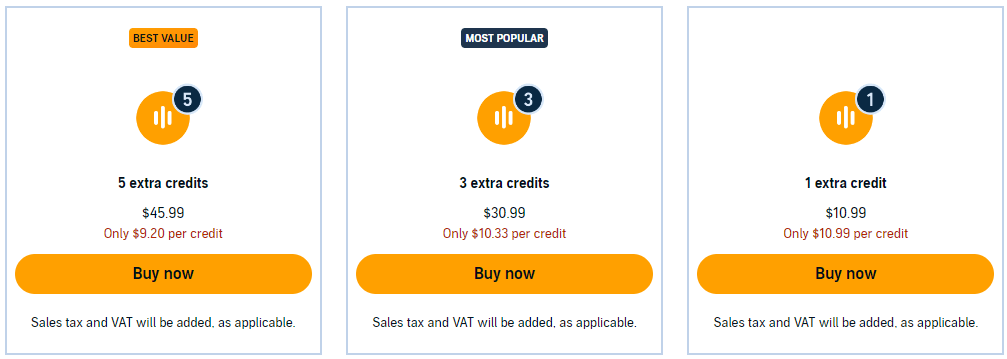 | Tier | Price/time | Credits | $/credit |